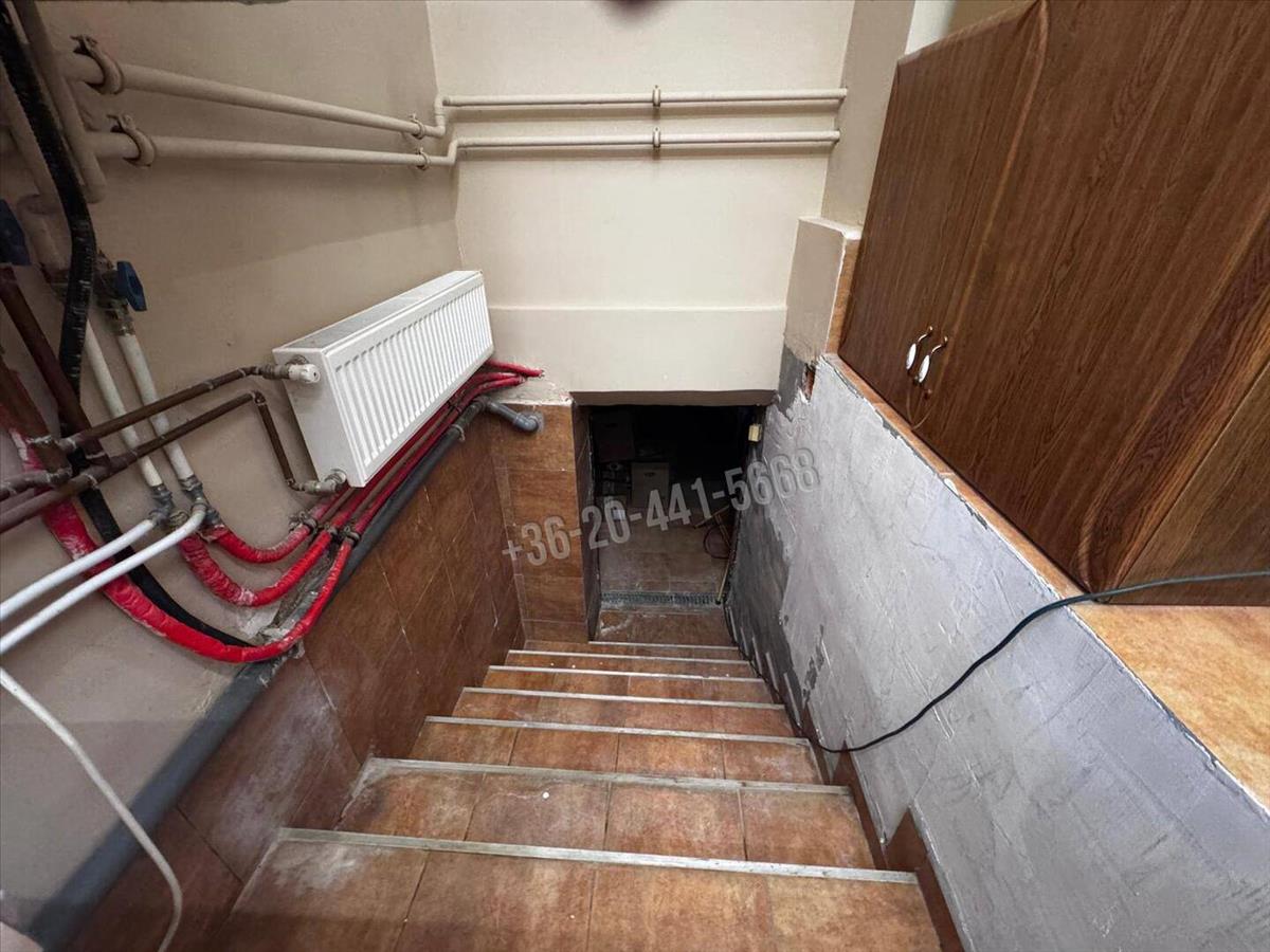 * háztartási helyiség kazánnal és pincelejárattal