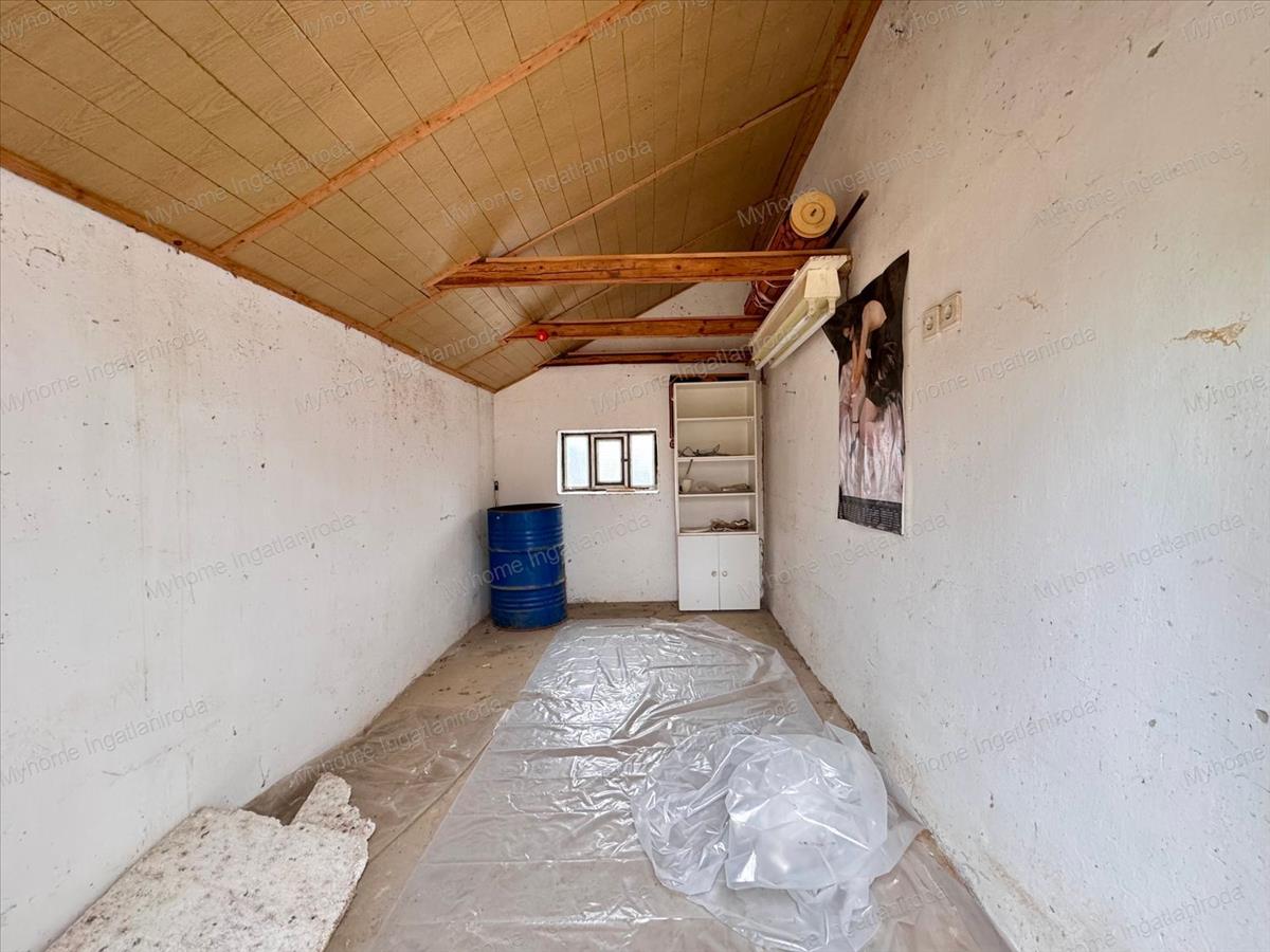 A telken található épület téglaépítésű, jó állapotú, a két szinten összesen négy különálló, 11 m²-es helyiséggel és egy 17 m²-es, nagy méretű terasszal, amely tökéletes pihenésre, grillezésre vagy tárolásra. Az épülethez további egy tárolórész is tartozik.