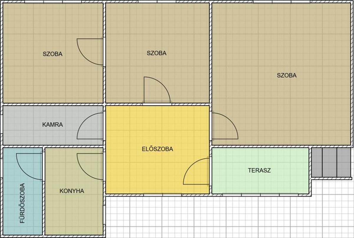 - 3 szoba (hajópadló, szőnyegpadló)