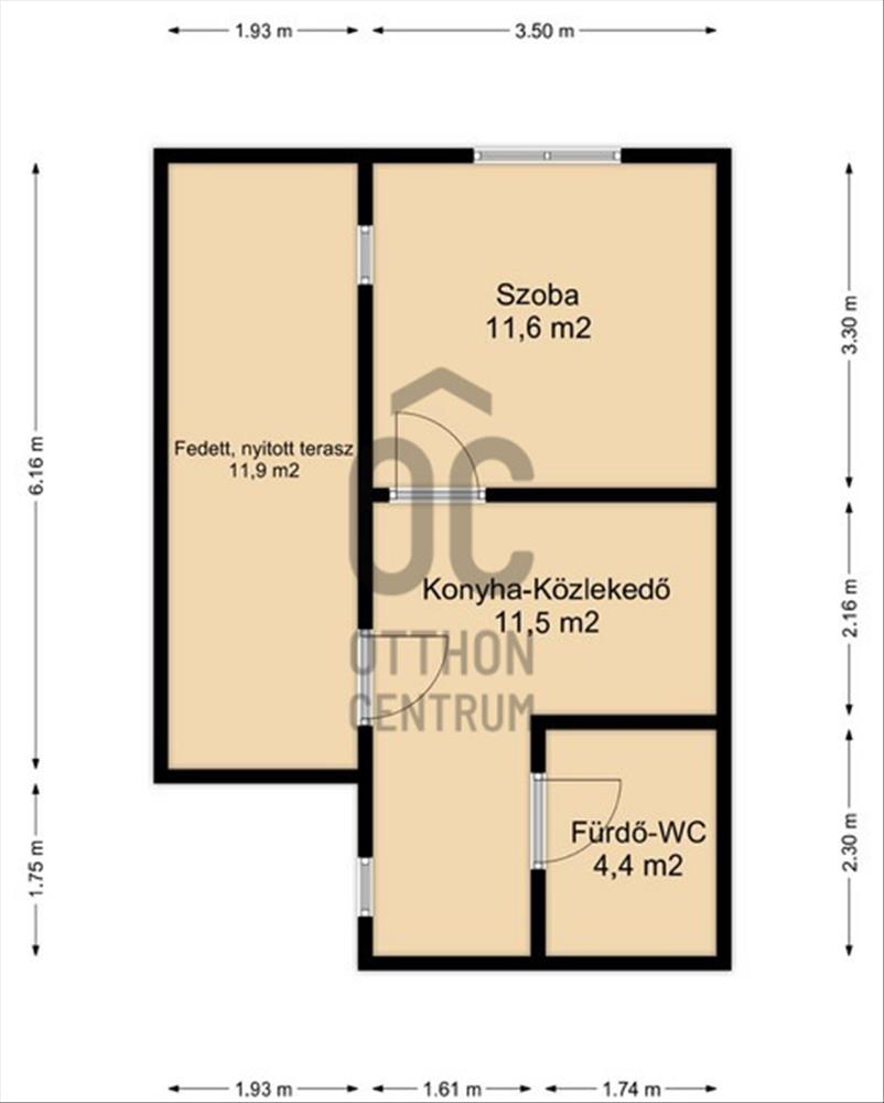 - Fedett terasza 11, 9 m2 nagyságú.