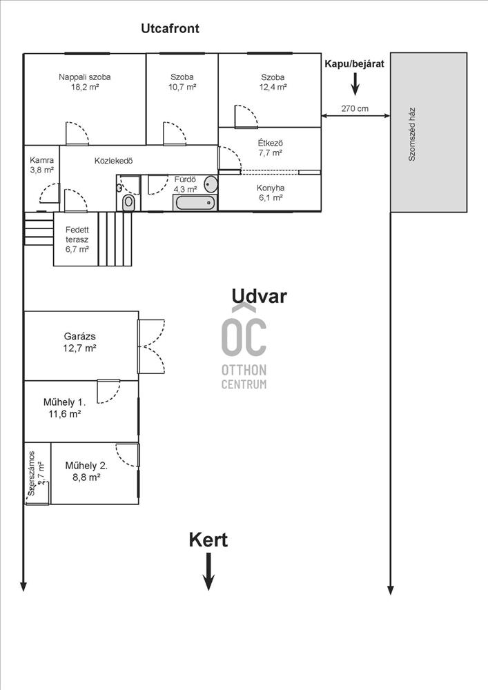 - a tégla építésű, bruttó 85 m2-es (nettó 77 m2) ingatlan 457 m2-es telken helyezkedik