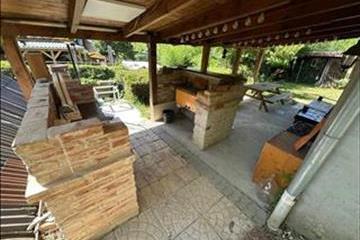 A terasz: Tökéletes helyszíne lehet kerti partynak, családi összejövetelnek. Nagy gonddal és odafigyeléssel készült, alatta 4 zsaluzóblokk mélyen beton alappal, hangulatos megvilágítással, csatornarendszerrel 21 nm-en, melynek egy konyha része is van, melynek külön vízmelegítő rendszere van. a föld fel lett falazva és elő lett készítve kemencének, így ez is kivitelezhető. Az udvaron található két korábbi garázs, melyek tárolási lehetőséget biztosítanak, igény esetén bonthatóak.