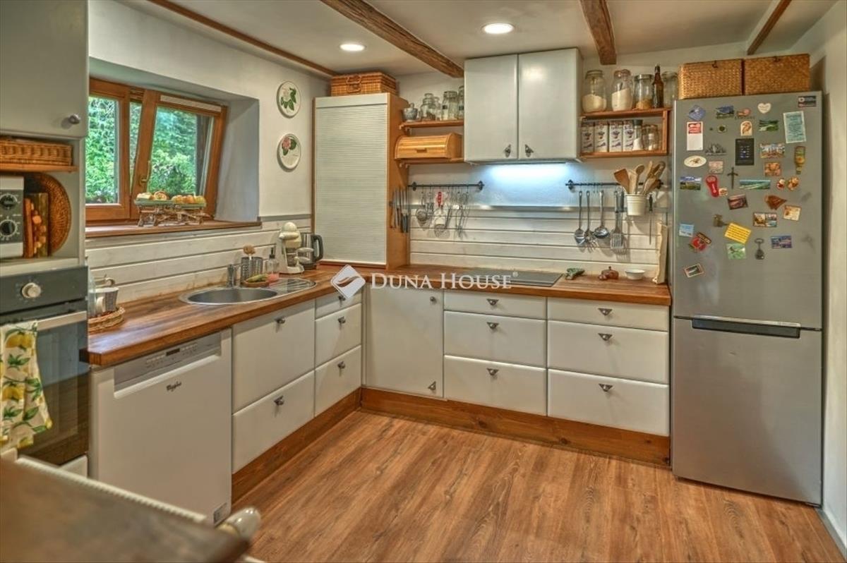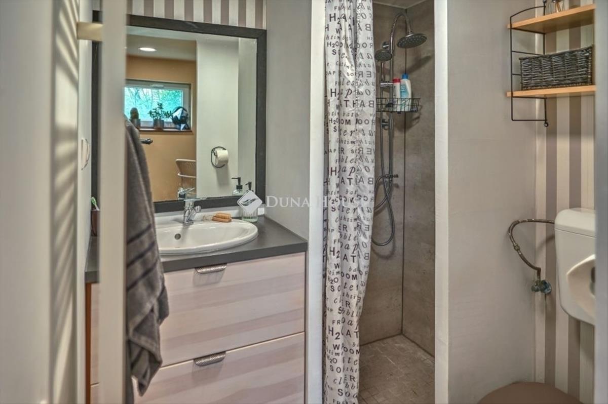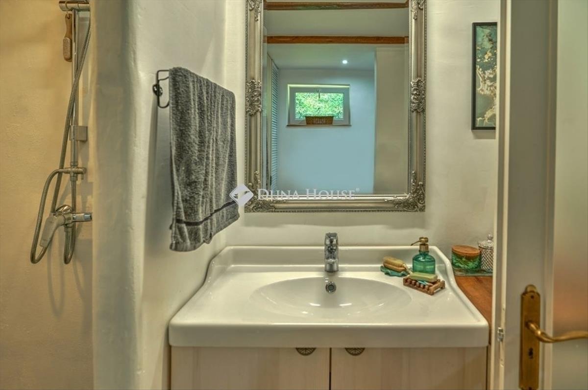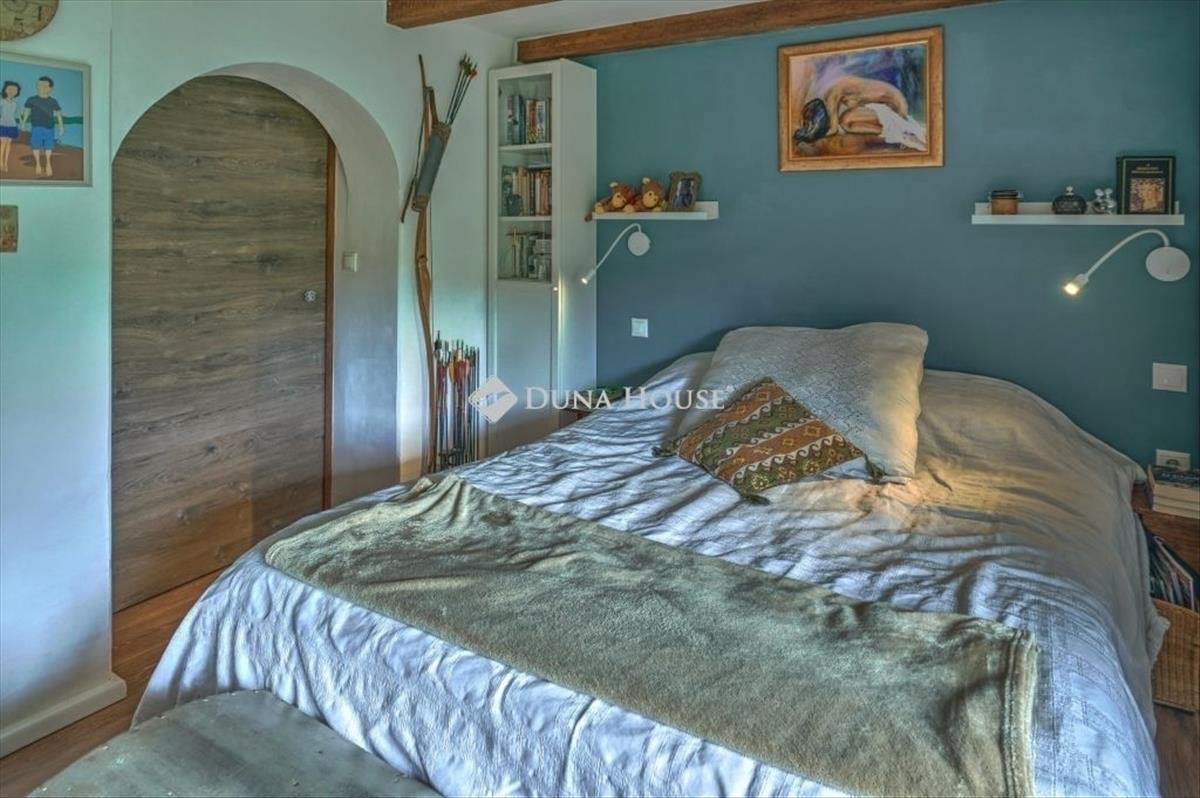 Zalaegerszegen, a belvárostól 10 percre, mégis békés, idilli környezetben eladó családi ház! Könnyen, takarékosan üzemeltethető, újszerű állapotban van. a fenntarthatóságiszempontokat figyelembe véve lett az épület felújítva, kialakítva. a benapozottság, a tájolás, mind-mind a takarékos, tudatos működtetést szolgálják, mégis kompromisszumok nélküli lakhatástbiztosítva. Az ingatlan családi ház minősítéssel rendelkezik, művelési ág alól kivont területen van, szabadonértékesíthető. Az ingatlan közművekkel teljesen ellátott területen fekszik. Szennyvíz, víz, szemétszállítás, (szelektívhulladék is), közvilágítás, optikai kábel. a gáz a házba nem került bevezetésre, de olyan távolságravan, hogy élni lehet az ingyenes bevezetés lehetőségével. Az erdő ölelésében elhelyezkedő családi ház kb. 2100 Négyzetméteres területen fekszik, csodálatos, szemet gyönyörködtető panorámával, amit a 42nm -es teraszról kényelmesen tudunk élvezni. Aparkosított és Fenntartható kert címmel rendelkező kertben cédrus, fenyő, ginkgo biloba, rengetegévelő, hagymás és egyéb virágzó cserje, és megannyi gyümölcsfa (füge, mandula, meggy, cseresznye, körte, szilva, alma, mogyoró, dió, galagonya) lett telepítve, tudatosan vegyszermentesen gondozva. Mellette és körülötte erdő van, ami nem beépíthető terület, háborítatlan nyugalmat biztosít. a házba belépve az eredeti, korhűen, de korszerű módszerekkel felújított, (nem nedves, és nempenészes! ) Vályogból készült részbe érkezünk, ami tökéletes, kényelmes helyet ad a konyhának és abeépített háztartási gépeknek. (Egy részük még garanciális időszakban van) Ebben a részben találhatóa fürdő, mely tadelakt technikával, stílusba illeszkedően készült, beépített bútorokkal és háztartásiszekrénnyel. a fürdő közvetlenül a hálóból is megközelíthető. a nappali és a ház többi helyiségénekkönnyűszerkezetes, kiválóan és több rétegben hőszigetelt megoldást választottak a tulajdonosok abővítés során. a végeredmény egy tágas, különleges enteriőrrel rendelkező otthon lett. Helyiségeit tekintve:-konyha, -fürdőszoba, -nappali+étkező, -hálószoba, -hálószoba+fürdőszoba, -terasz, -kamra, -raktár, -fedett terasz. a ház a telek legmagasabb pontján fekszik, elvehetetlen panorámás kilátással a környező dombokra, erdőre, a kertre. a lakóingatlan szinte átalakítás nélkül használható akár vendégháznak is, mindkét hálószoba önállófürdővel rendelkezik. a bútorzat egy része beépített, így a ház részét képezik. Ezzel egy régótafelmerülő igényt lehet kielégíteni, és nem kell a leendő tulajdonosnak itt élnie. Víz-és villanyvezetékei újak és korszerűek, a ház éjszakai és ipari árammal ellátott. Fűtése kandallóvaltörténik, radiátoros hővezetéssel, illetve padlófűtéssel, központi vezérléssel. Napelemfelszerelésének lehetősége adott, a tervek készen vannak, a hálózati előkészítettség adott. a kert fiatal, 7 éves, és tudatosan ökológiai szempontok szerint került kialakításra. a növényzetsokszínű, kialakítása miatt viszonylag kevés a gondozandó felület már. Az öntözést segíti a felszín aláépített 4m3-es esővíztároló, ahova a csapadékvizet gyűjtik. Minden növény méhbarát, és alegtöbbjük gyógynövény is. a hagyományosan használt fűszerek többsége terem a kertben. Megtekintéshez egyeztessen velem telefonon, várom megtisztelő hívását akár hétvégén is! FIX 3% lakáshitelre megvehető