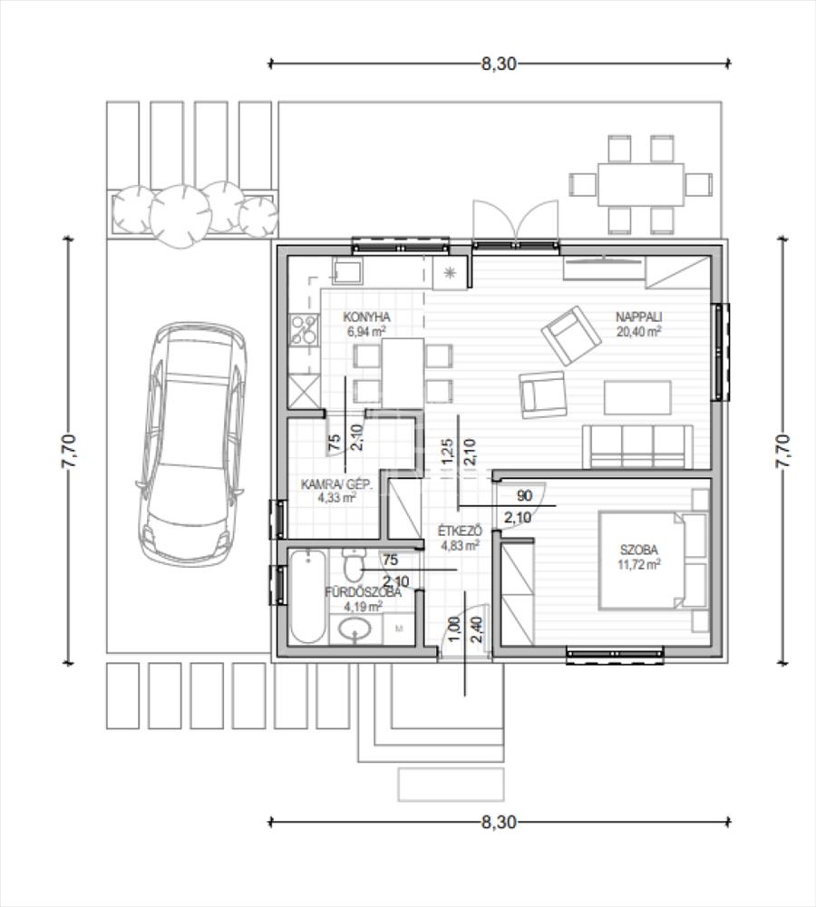 Új otthonát egyéni ízlésének megfelelően alakíthatja: falszínek, burkolatok, nyílászárók és ajtók mérete/színe, szaniterek minősége, külső vakolat és tető színe egyedileg választható.