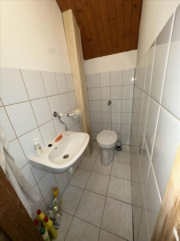 A fürdőszoba kényelmes, egy zuhanyzó és egy fürdőkád is könnyen elfér benne. a mellékhelyiség külön nyíló, méretéből adódóan egy polc is fellelhető benne.