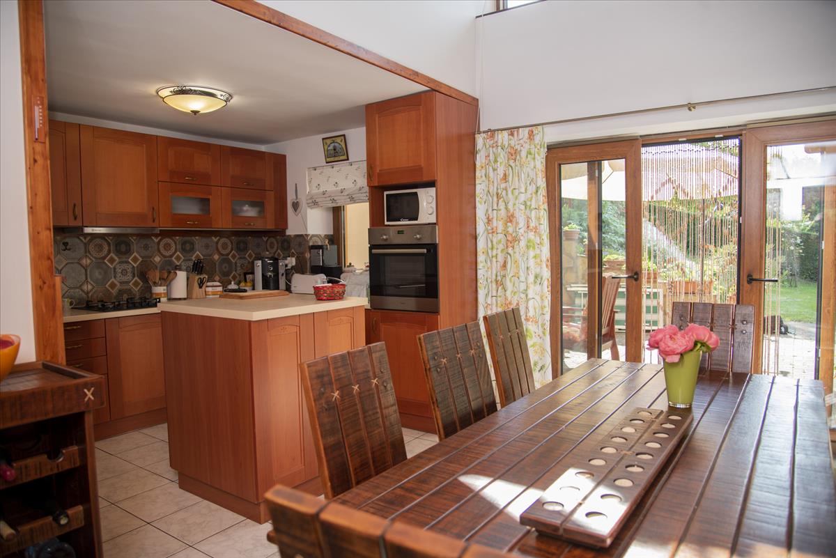 Emeleti elhelyezkedés: Földszinten Épület emeleteinek száma: 3 Állapota: Használt - felújított Komfort besorolása: összkomfortos Építési éve: 1994 Alapterülete: 200 m2 Telekterülete: 1 531 m2 Szobák száma: 5szoba Felújított: Felújított Közművek: Gáz, Víz, Villany, Csatorna Vízellátás: Vezetékes víz, Közelben Áramellátás: Telekhatáron, Közelben Fűtés módja: Gáz Fűtés típusa: Központi gázkazánnal Homlokzat állapot: Felújítandó Építési mód: Tégla Parkolási lehetőség: Garázsban Napelem: Van Energetikai besorolás: Nincs adat