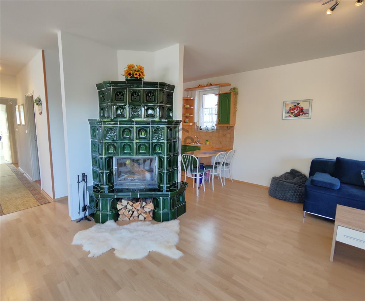 Helyiségei: 1 nappali konyhával és étkezővel (itt található a cserépkályha is), 4 szoba, 2 fürdőszoba, gardrób helyiség, lépcsőház, tároló, garázs.