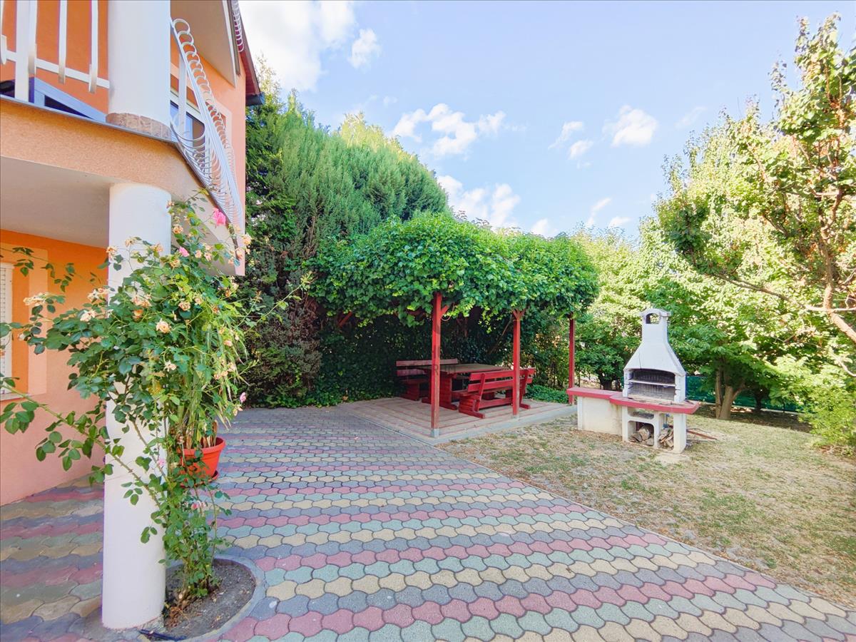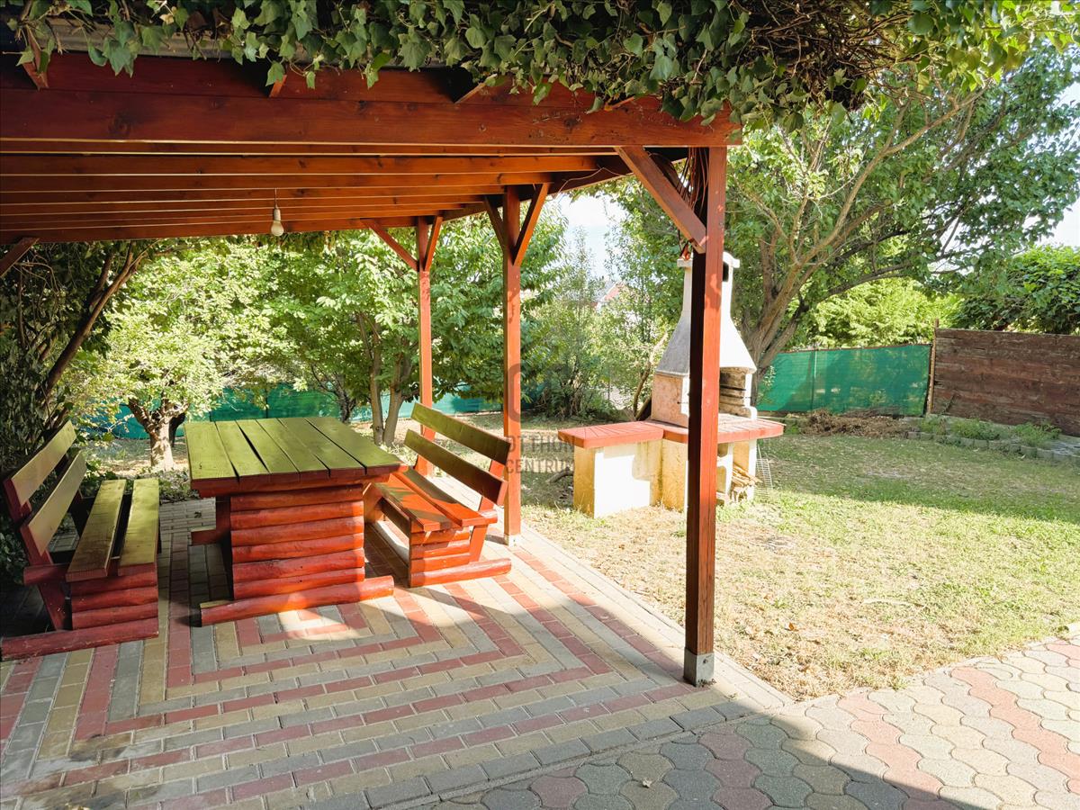 A hátsó fedett terasz mellett épített grillező található.