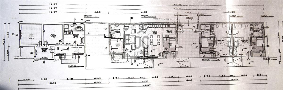 - a külön bejáratú családi ház 65 m2-es, az apartmanok területe pedig egyenként 37 m2, amelyekből négy épült.