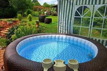 Az ingatlanon kerti kiülők, igény szerint jakuzzi és medence diszkrét természeti környezetben szolgálhatja a felhőtlen kikapcsolódást.