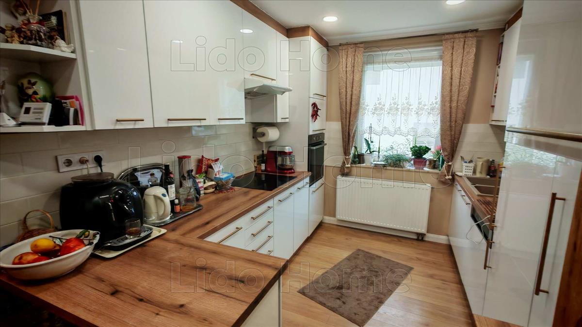 A három szintes ház, mely minőségi anyagokkal, minőségi munkával, teljeskörű felújításon esett át. a ház két részre osztható, a magasföldszint az emelettel, illetve a földszinti rész. Ezen részen kialakított lakás, akár kiadás céljára is tökéletes, vagy a nagyszűlők külön lakrészének is tökéletes. a kétszintes lakrész három hálószobából, minden szinten külön fürdőszoba és külön wc. a házat a világos és tágas terek jellemzik. Az ingatlan elhelyezkedése miatt, minden napszakba a nap sugarai adják a természetes fényt. Fűtéséről a kondenzciós kazán, illetve a nappali gyönyörű ékeként a cserépkályha gondoskodik. a ház elegáns, pasztell, meleg szinek, nagyon igényes burkolatok, mint a márvány, egy igazi álomotthon. Biztonságról a riasztó, a kamerarendszer gondoskodik. Míg a kényelemhez, az elektromos kapu, a hatalmas garázs, a fedett beálló, vagy a hatalmas fedett terasz szolgál. a nyilászárók műanyagok, redőnnyel és szunyoghálóval ellátottak.