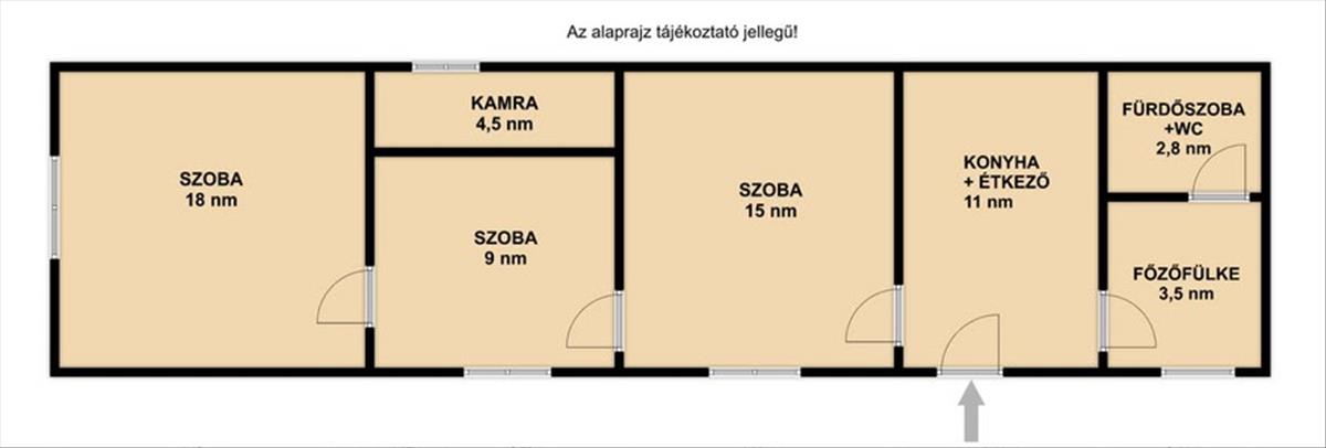 Elosztás: 3 szoba, konyha, főzőfülke, kamra, zuhanyzós fürdőszoba + WC