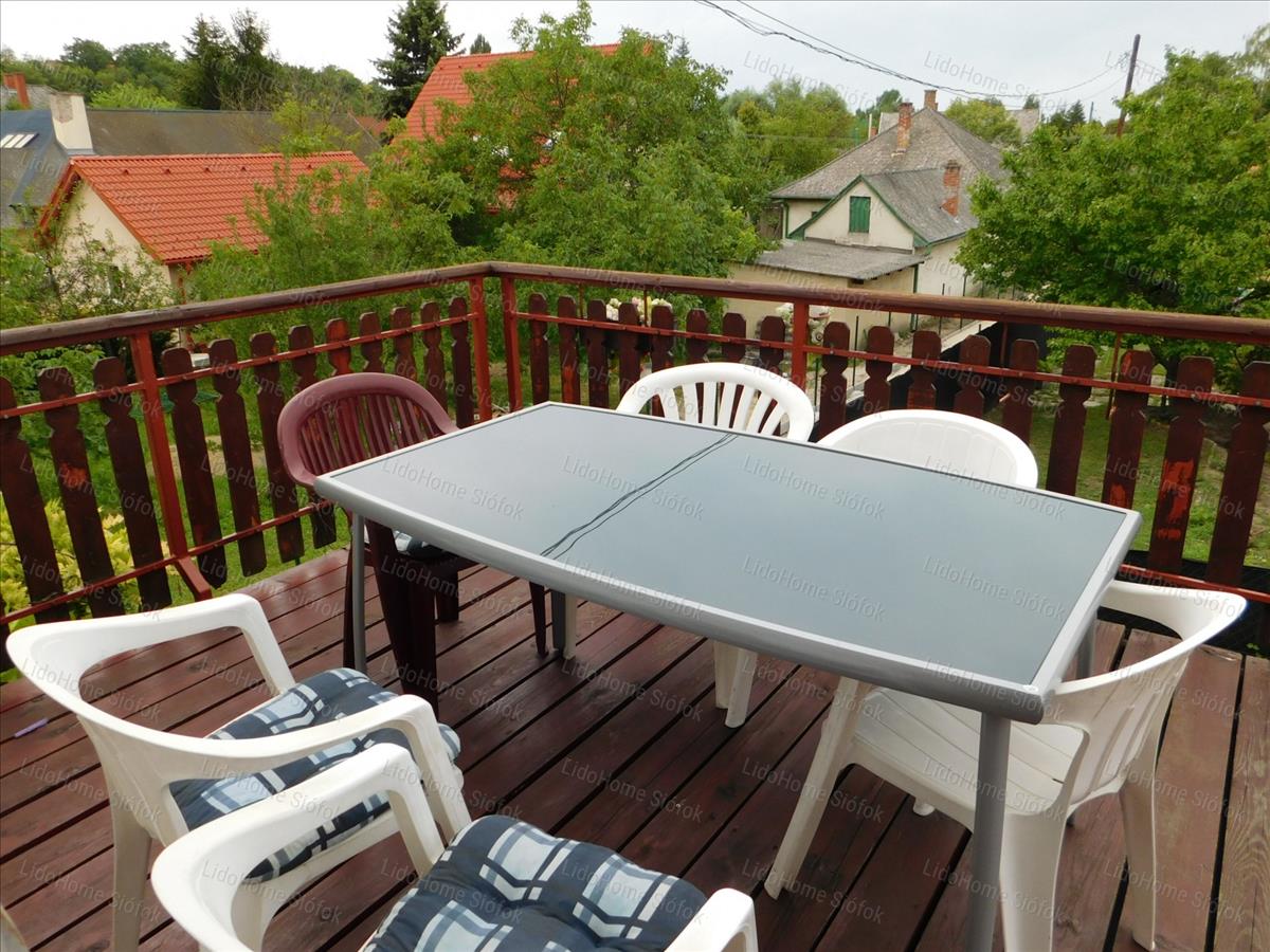 -Magasföldszint és félemeleti lakrész helyiségei: előszoba, nappali, nagy étkezőskonyha, kamra, 2 hálószoba, fürdőszoba, külön wc, továbbá mindkét oldalon egy-egy nagy terasz. 5-6 Fő elhelyezésére alkalmas.