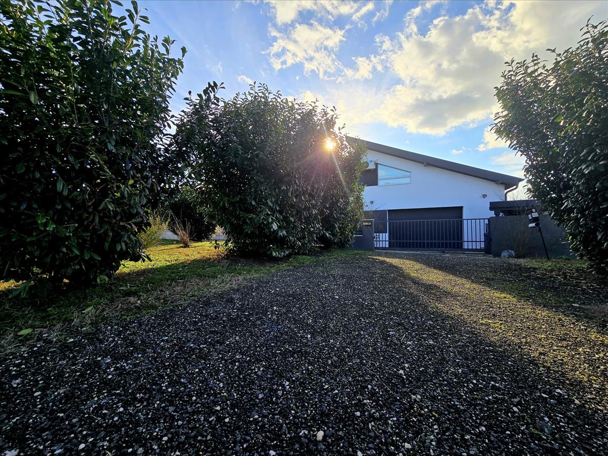 Földszint: hálószoba, fürdőszoba WC-vel, külön wc, előszoba, mosókonyha gardróbbal, konyha–étkező–társalgó, kamra, gépház, dupla garázs, fedett terasz külső konyhával.