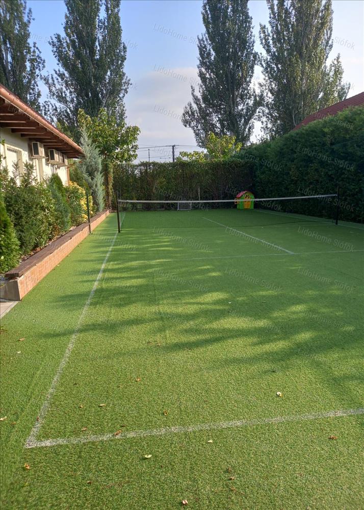 - van egy medence az udvaron ami 20 m2, egy műfüves focipálya ami 240 m2, egy kis kerti ház ami 25 m 2, egy nagyon szép és hangulatos szőlővel felfuttatott lugas és fedett kiülő aminek a közepén lehet sütni főzni és tartozik még egy feddett jakuzzi is ami kívülről is kényelmesen megközelíthető
