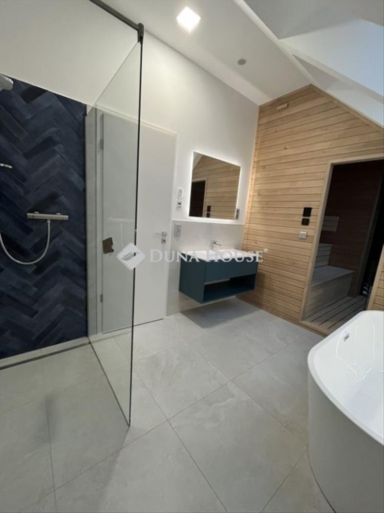 Exkluzív modern otthon Zamárdiban medencével és szaunávalEz az ingatlan a letisztult formavilágot, az egyedi építészeti megoldásokat és a magas műszaki tartalmat ötvözi egy igazán különleges otthonban. a ház Zamárdiban, a Balaton partjától mindössze 3 perc sétára, nyugodt, családias környezetben helyezkedik el. a kétszintes épület 107, 23 m² hasznos alapterülettel rendelkezik, elosztása kiválóan átgondolt, összesen 4 szobával:1 vendégszoba a földszinten3 hálószoba az emeletenFöldszint:A földszinten egy tágas, világos nappaliétkezőkonyha található egy légtérben, közvetlen kertkapcsolattal. a tér különlegessége a 3 méteres tolóajtó, amely teljesen megnyitja a belső teret a kert felé. a mérnöki pontosság jegyében a tolóajtó pontosan a medencével szembe nyílik, mely tükrözi a ház részletes kidolgozását és precizitását. Ezen a szinten kapott helyet továbbá:külön vendégszobavendégfürdőszobagépészeti / háztartási helyiség mosó- és szárítógép számáraelőszoba, exkluzív olasz dizájnvakolattal és rejtett ajtókkalEmeletAz emeletre egy egyedileg gyártott, acélvázas tölgyfa lépcső vezet üvegkorláttal. a lépcsőfordulóban megvilágított természetes kő dekoráció teremti meg az érkezés különleges hangulatát. Az emeleten található:3 hálószoba, melyből kettő teljes berendezéssel, a szülői hálószobához saját fürdőszoba tartozikegy tágas családi fürdőszoba épített zuhanyzóval és káddal. a térben álló fürdőkád elhelyezése lehetővé teszi, hogy a nagyméretű tetőtéri ablakokon keresztül akár éjszaka is a balatoni égbolt látványában gyönyörködhessünk. Műszaki felszereltség és komfortAz otthon komfortjáról modern hőszivattyús rendszer gondoskodik:nyáron mennyezethűtéstélen padlófűtésminden helyiség külön vezérelhető, távolról irányítható termosztáttalA nagy üvegfelületek, az emelt belmagasság és a kedvező tájolás egész nap természetes fénnyel tölti meg a házat. a nyári felmelegedés ellen motoros alumínium zsalúziák biztosítanak védelmet. a homlokzaton 20 cm, a tetőszerkezetben 30 cm vastag kőzetgyapot szigetelés került beépítésre. Belső berendezés és extrákA teljes bútorzat egyedi tervezésű, magas minőségű asztalosmunkával készült. Az ingatlan egyik különlegessége a panorámás finn szauna, amely akár 5-6 fő számára is kényelmes használatot biztosít. Kert és kültéri élményekA gondosan kialakított udvar valódi privát pihenőkert:3 × 5, 5 méteres medence, saját hőszivattyús fűtéssel és hűtésselgrillezőterületelszeparált pihenőterasz motoros pergolávalautomata öntözőrendszer fúrt kútróldísz- és térvilágítás, távolról vezérelhető kültéri fényekteljes körbekerítés babérmeggy sövénnyelParkolás és biztonságudvari beálló 1 autónakmotoros kapuelektromos autótöltőriasztórendszer és kamerarendszerA környék kifejezetten csendes és biztonságos. Érdeklődjön elérhetőségeimen, és tekintse meg személyesen ezt a balatoni hangulatú otthont. +36 (70) 580 9443Kovacs. Magor. Istvan@dh. Hu Hitel.hu - Hasonlítsa össze a bankok lakáshitel ajánlatait