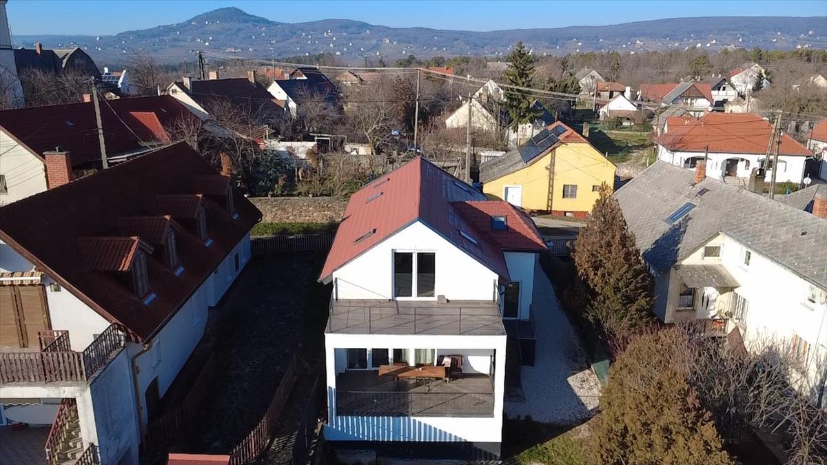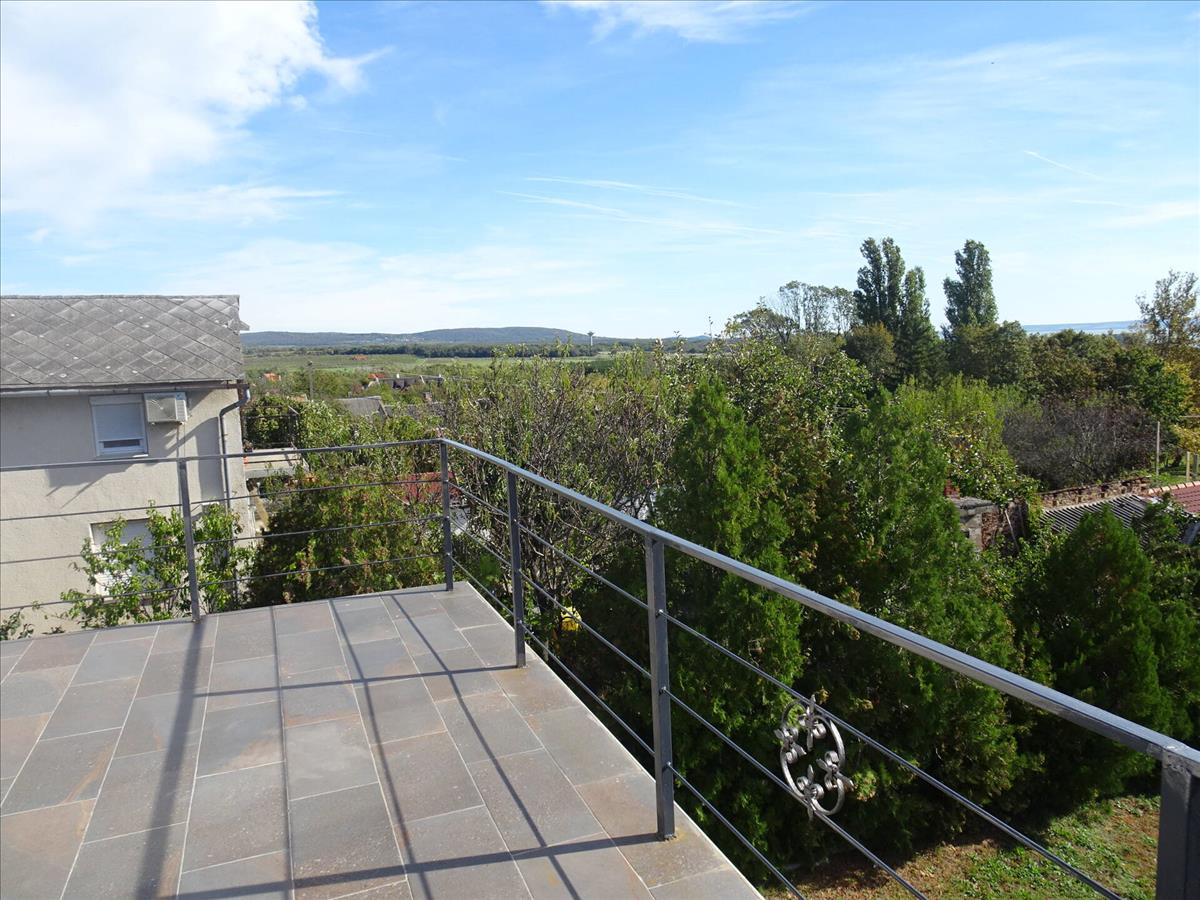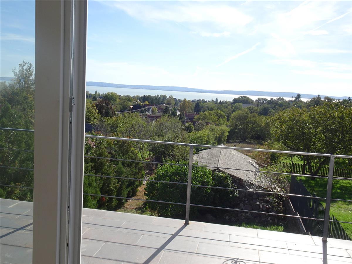 A 180 nm-es modern épület korszerű anyagokból készült, padló- és mennyezeti fűtés-hűtésrendszerrel rendelkezik hőszivattyúval. Elektromos autótöltővel.A földszinten az amerikai konyhás nappaliból tágas, fedett teraszra érkezünk szép balatoni kilátással. a földszinten még 2 hálószoba, fürdőszoba és egy gépház készült.