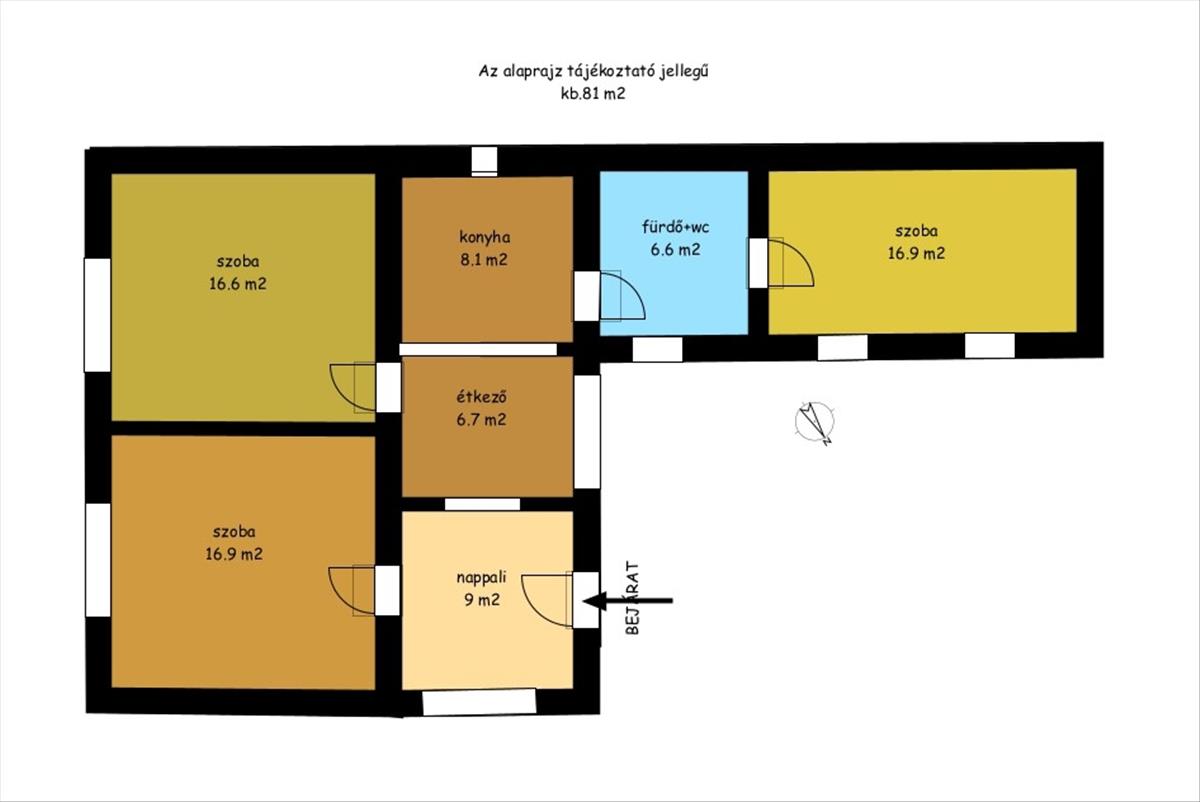 • Elosztás: Nappali + 3 külön nyíló szoba, konyha-étkező, fürdőszoba és wc.