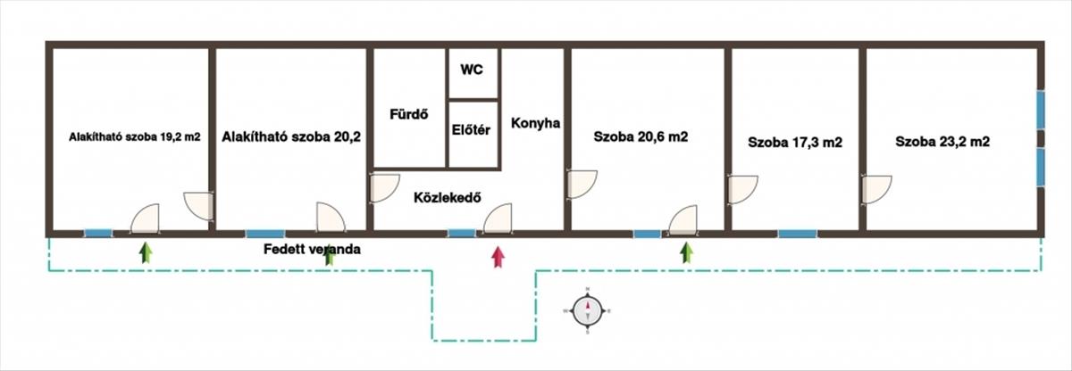 A ház 87 m²-es, jelenleg 3 szobából áll, de az ingatlan 128 m²-re bővíthető, így akár 5 szobássá is alakítható kiváló lehetőség nagyobb családoknak, illetve vendégház kialakítására.