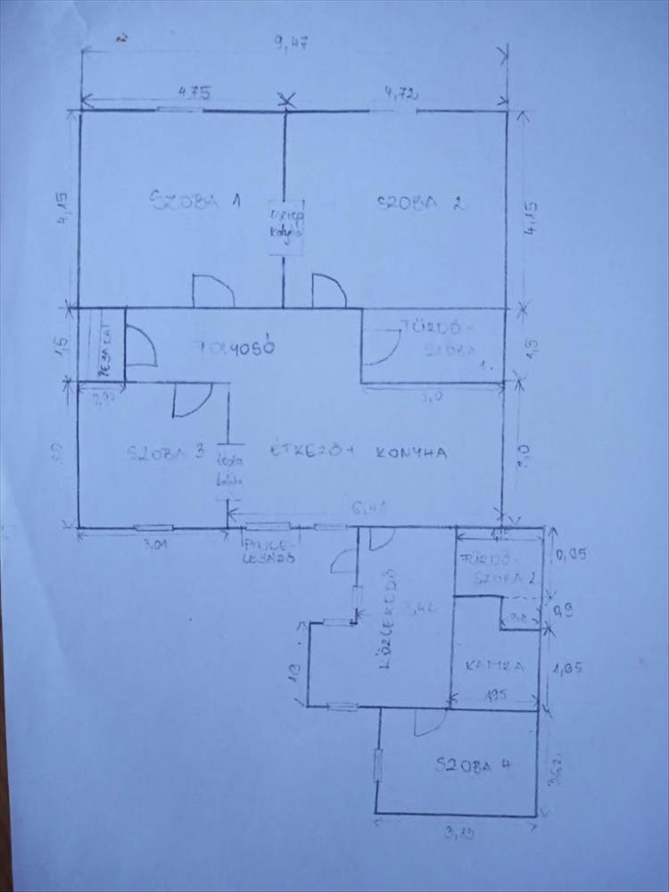 Szobák száma: 4 hálószoba, 1 amerikai konyhás nappali, 2 fürdőszoba ( egy káddal, egy zuhanyzóval felszerelt), kamra, étkező.
