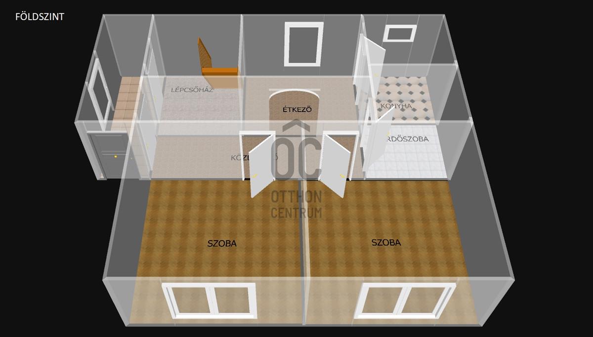 (2 szoba, étkező, fürdőszoba, konyha, előszoba és közlekedő)