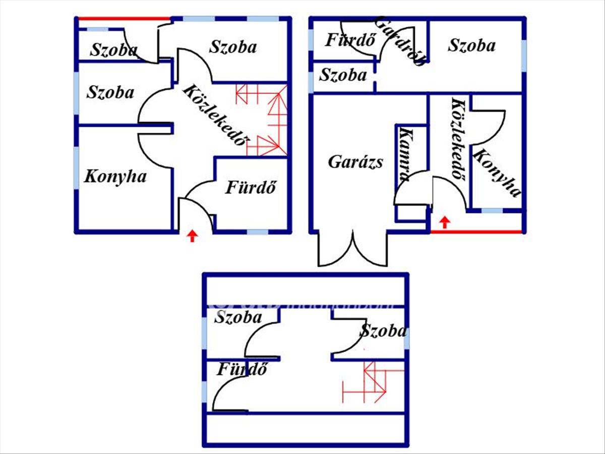 Az emelet akár külön, egy másik kis zsákutcáról is megközelíthető, így teljesen szeparálható.
