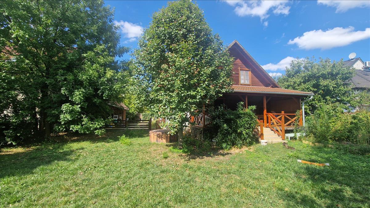 Zsámbék szívében, rendezett környezetben kínálunk megvételre egy 720 m²-es telken álló, 140 m²-es, kétszintes, összkomfortos, jó állapotban lévő gerendaházat, amely 2005-ben épült és máig gondosan karbantartott.