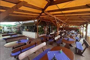 - a létesítmény lelke az étterem és a hozzáépített szigetelt, fedett terasz. Folyamatos, ízletes konyhával, udvarias kiszolgálással csábítja a vendégeket, mivel 180 fő kényelmes befogadására alkalmas a vendéglő.