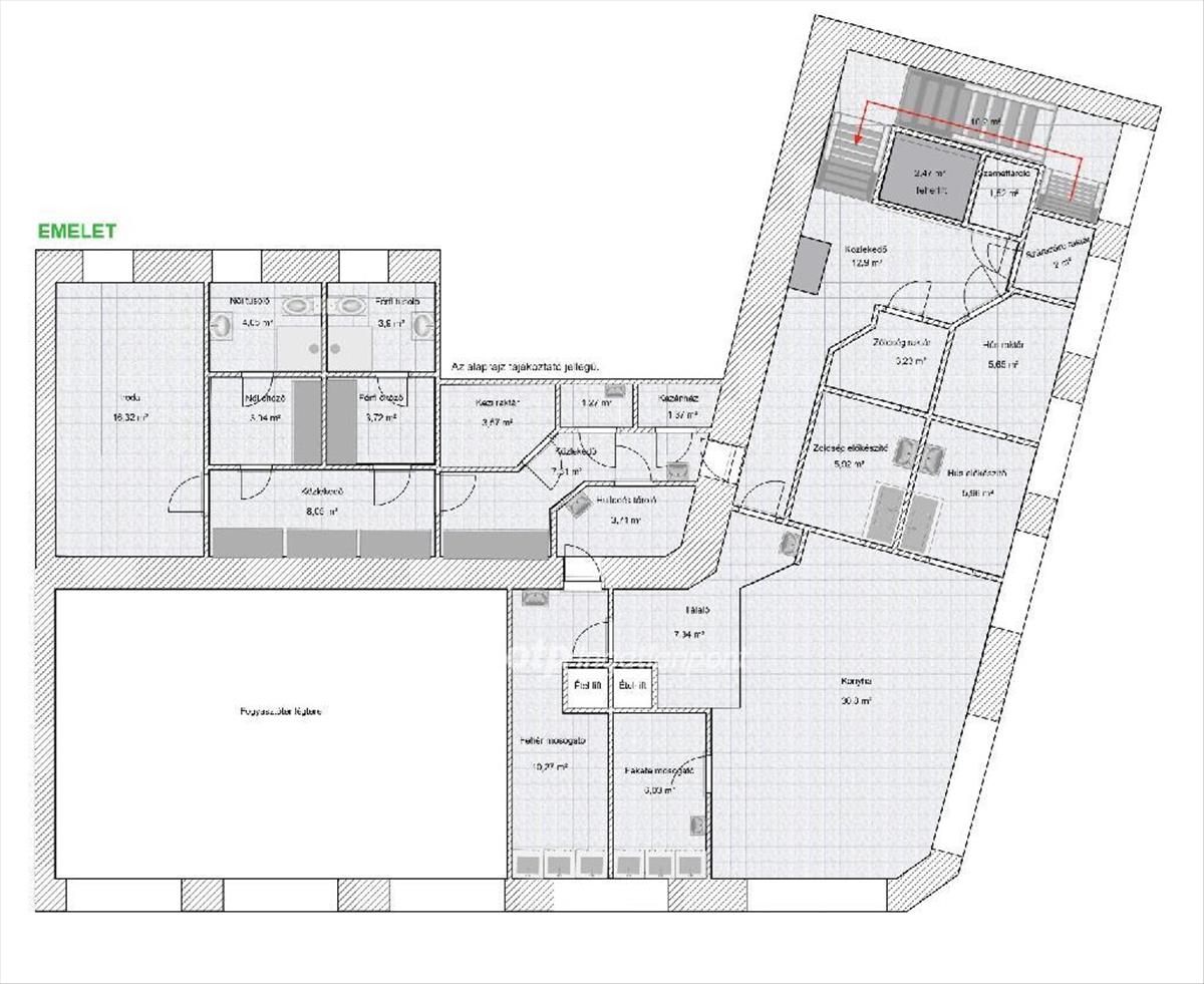-Pince (386 m2): Külön utcai bejárattal is rendelkezik az Erkel utcáról, így akár önálló egységként is üzemeltethető.