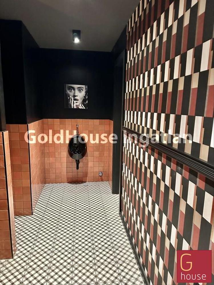 A földszinti, utcafronti 80 m²-es tér vendégfogadásra alkalmas, bárpulttal, kiszolgálóhelyiséggel és egy kisebb méretű konyhával felszerelve, amely legalább 30 fő kényelmes elhelyezését biztosítja. Az alsó szinten található 146 m²-es vendégtér három részre osztott, vip teremmel és különálló női-férfi vizesblokkal kiegészítve. Az ingatlan minden szükséges hatósági engedéllyel rendelkezik, beleértve a melegkonyhás üzemeltetéshez szükséges jogosultságot és a 99 fős befogadóképességet igazoló engedélyt.