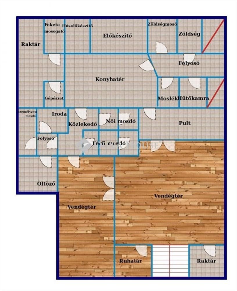 Az ingatlan egy négyemeletes, kifejezetten jó állapotú bérház pinceszintjén, jelenleg étteremként került kialakításra. a földszintről széles és kényelmes lépcsőtér vezet a vendégtérbe, a csatolt helyiségek átgondoltan kerültek kialakításra. a bejáratnál közvetlen raktár és vendégöltöző is helyet kapott.