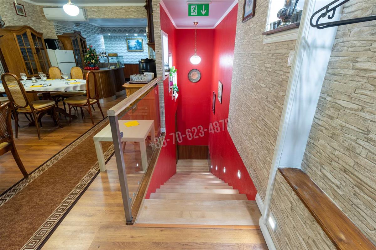 Az emeleten további 167 nm-en gyarapodhat a vállalkozása. Itt egy nagyon exkluzív, újabb 60 főt befogadó gyönyörű vendégtér van kialakítva csodálatos, csupa egyedi berendezési tárggyal. Nem lehet körülírni, de a képek talán magukért beszélnek, mégis a legjobb az lenne, ha saját szemével látná! Itt fent vannak még a raktárak, iroda, szerverszoba, öltözők, mosdók, zuhanyzók is.