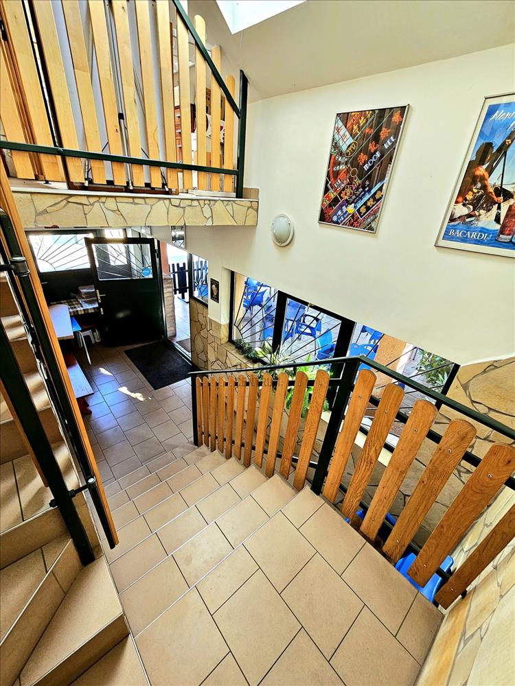Az egyik ingatlanban az alsó szinten étterem és ételkiszállítással foglalkozó cég funkcionál bejáratott ügyfélkörrel.