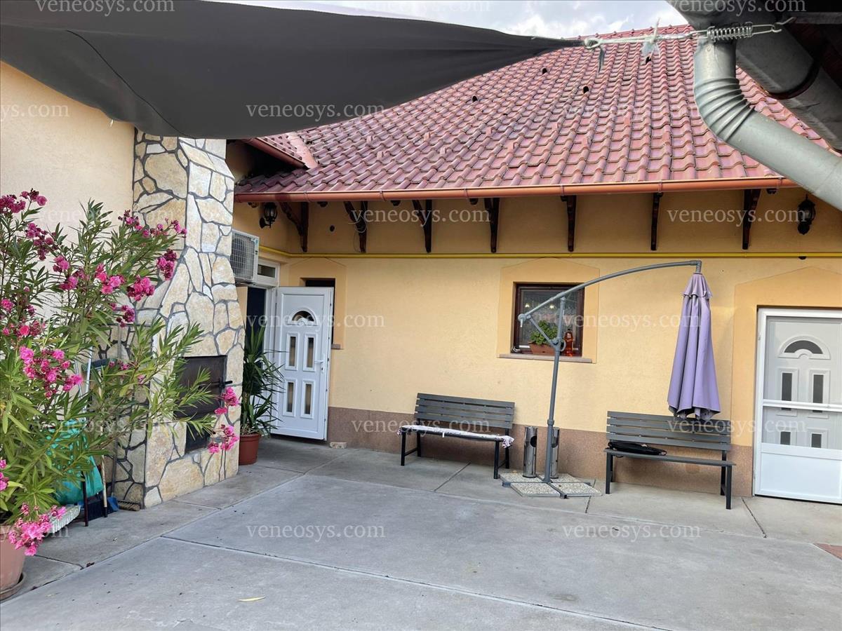 Térkövezett és parkosított udvar, fedett kiülő, (Lakodalmas sátor és 8x8 méteres lemezgarázs az alku tárgyát képezi)