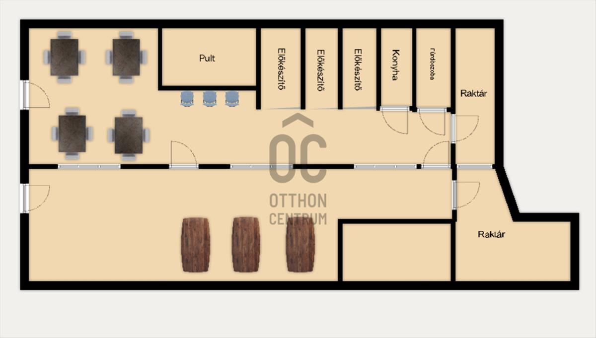 Az ingatlan a teljes berendezéssel, céggel együtt eladó, melyet a hirdetési ár már tartalmaz.