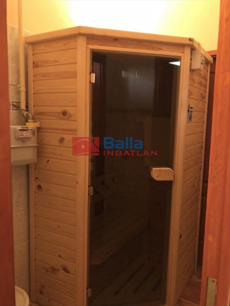 Ezen a szinten található egy folyosó, zuhanyozós fürdőszoba Wc-vel és egy külön Wc is rendelkezésre áll, egy infra szauna, egy szoba, valamint egy amarikai konyhának megfelelő helyiség és nappali.