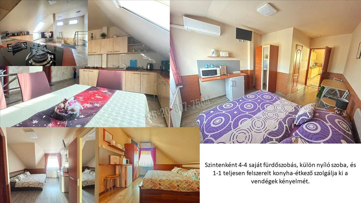 300 m²-es, 2009-ben teljes körűen felújított 8 szobás, 8 fürdőszobás vendégház, külön nyíló 100 m2-es, nappali+2 szobás földszinti apartmannal.