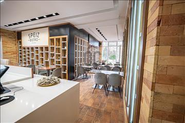 Az ingatlan 2 szinten helyezkedik el, alsó szinten konyha, raktárak, mosdók, személyzeti öltöző és mosdó, a földszinten a 2 utcáról bejárattal jelenleg bisztróként berendezett üzlet helyezkedik el, mely minden igényt kielégítő, elegáns jó hangulatú, kávézó, cukrászda, reggeliző hely lehet.