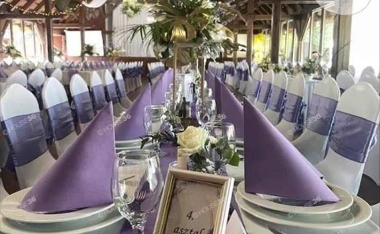 A 200 fős rendezvények lebonyolításához minden adott: ipari konyha, hűtőkamra, teljes terítékkészletek, nagy légterű rendezvényterem, színpad, nagy felületű fedett terasz, engedélyek, stb.