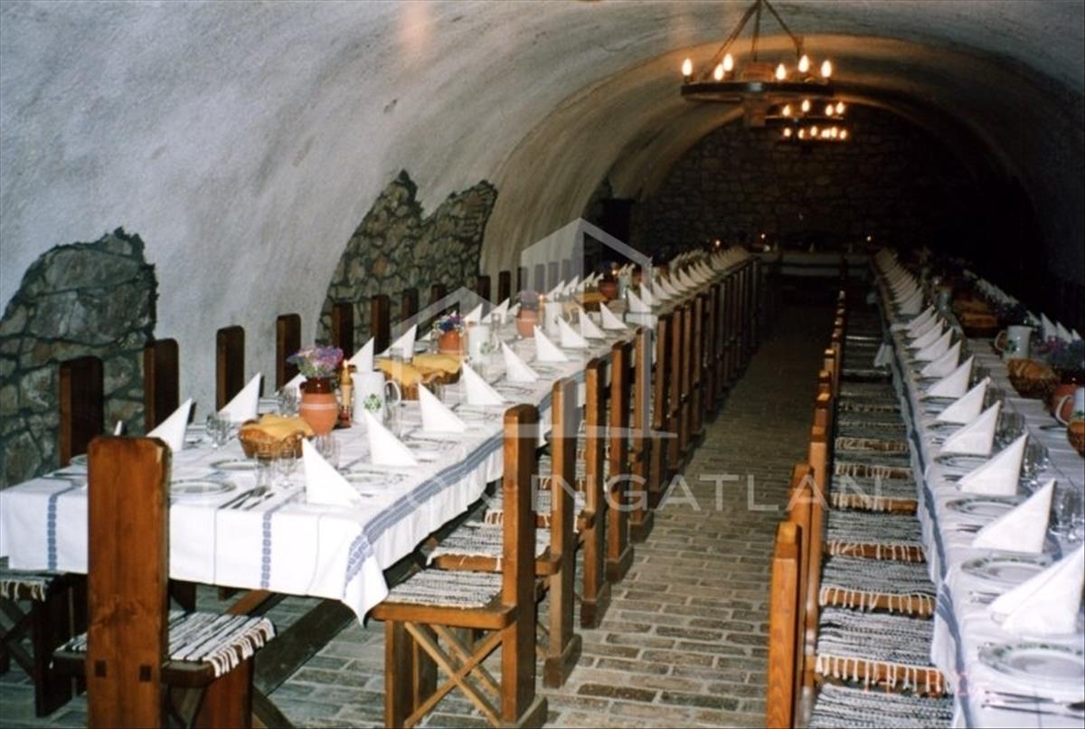 A 390 m2 magában foglal konyhát, 150 fő befogadására alkalmas fedett éttermet, 250 m2-es borozót, boltíves borospincét, borozó vendéglátóhelyet, vizesblokkokat, irodahelyiségeket.