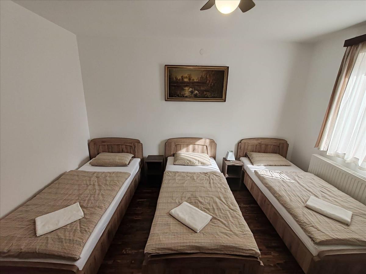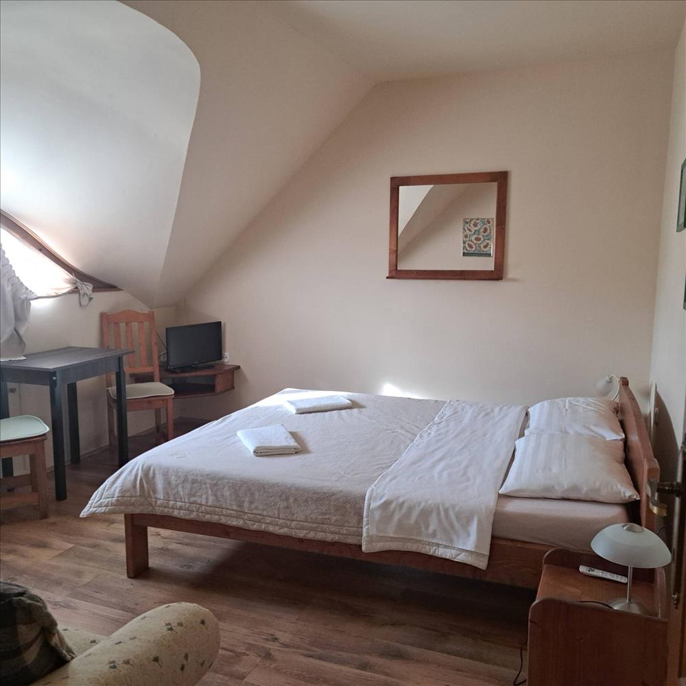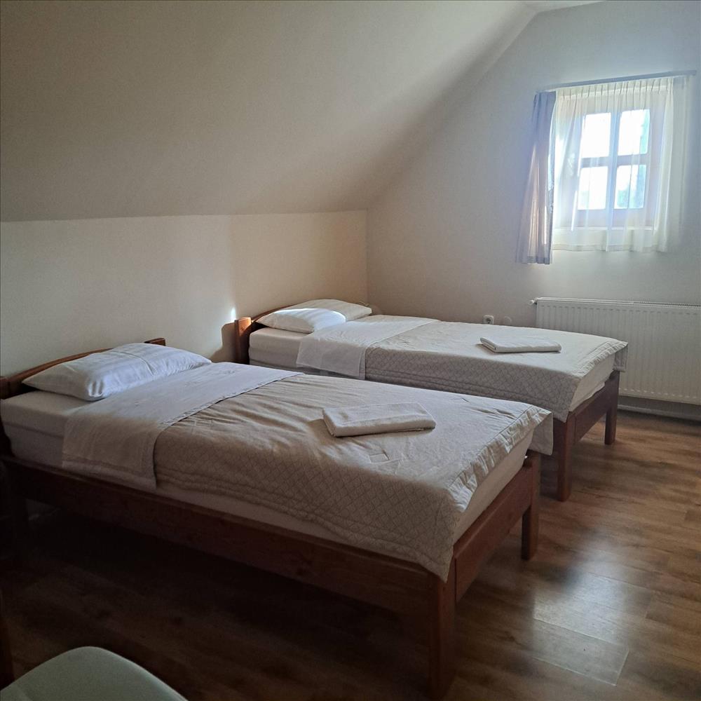 Az étterem emeletén és a külön épületben lévő panzióban összesen 16 szoba saját fürdővel + 1 apartman – 2 szoba, nappali, konyha, fürdő- továbbá szauna és raktárhelyiség került kialakításra igényes minőségben és kiváló stílusban. a szálláshely összesen 43 fő befogadására alkalmas, teljes alapterülete 190 nm fsz+140 nm tetőtér + étterem tetőterében további 200 nm . a panzióban 3 éve az összes bútor és nyílászáró cseréje megtörtént.