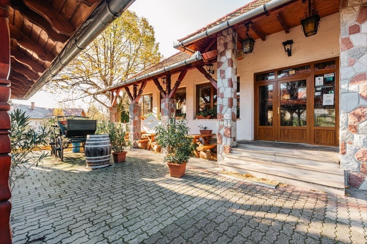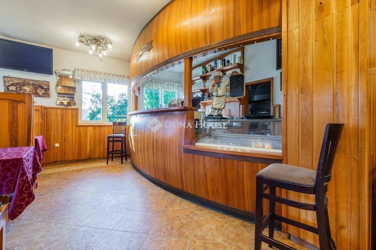Az 1090 nm-es telken álló épület hátsó része és az abból nyíló lakás az 1960-as években, míg az étterem nagyobb vendégtere 2002-ben épült. a vendéglő 129 nm, a mellette található 47 nm-es lakásnak a kert felől is van bejárata. Rendelkezésünkre áll még egy 12 nm-es tároló, egy 21 nm-es garázs és a telken önállóan elhelyezkedő 113 nm-es, 2 szint + pince kialakítású ház. Az étterem egyik ékessége a hatalmas, részben fedett terasza és a gyönyörű kemence. Az ingatlan panziónak is tökéletes, a felső szint ennek megfelelően kialakított. Az épület előtt a vendégek számára fenttartott helyeken a parkolás megoldott.