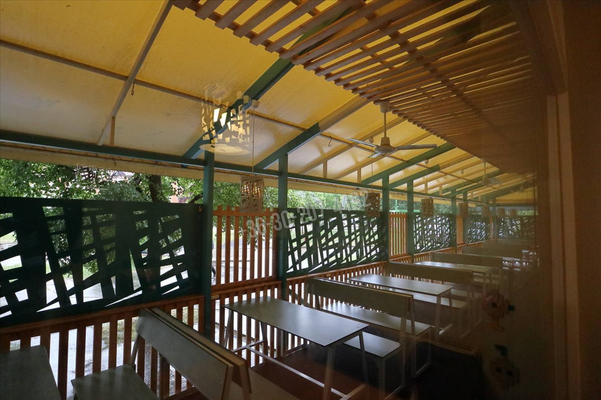 Az étterem 143 négyzetméter, 50 fős mely tavasztól késő őszig kiegészül egy 42 főt befogadó terasszal.
