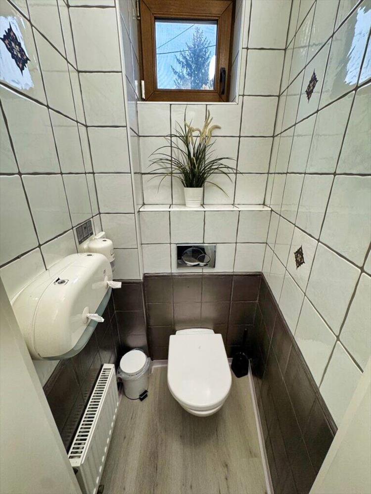– az alsó szinten egy étterem vendégek részére látványkandallóval, mosdó (férfi-női), konyha, előkészítő, mosogató, raktár, személyzeti öltőző és személyzeti mosdó. Továbbá tartozik még hozzá raktár, valamint egy belső udvaron található térkövezett, részben fedett terasz.