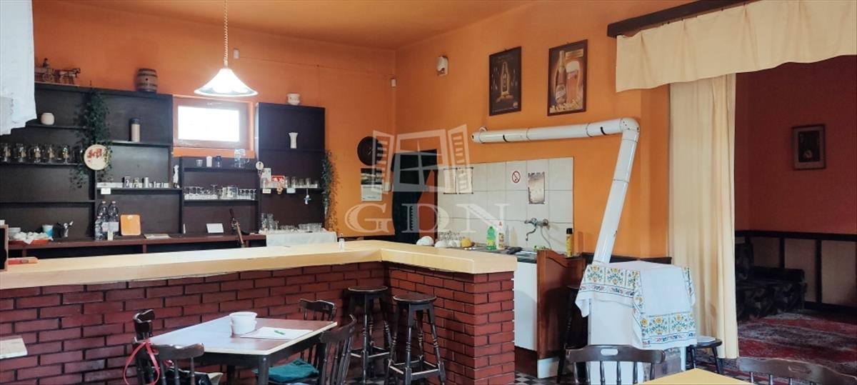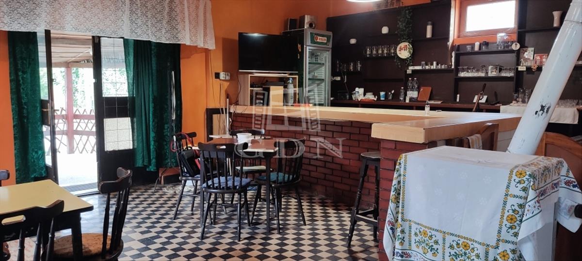 A terasz felől közelíthető meg a pulttal rendelkező 43 m2 alapterületű helyiség, ezen át pedig a másik vendégtér, valamint külön női és férfi mosdók.