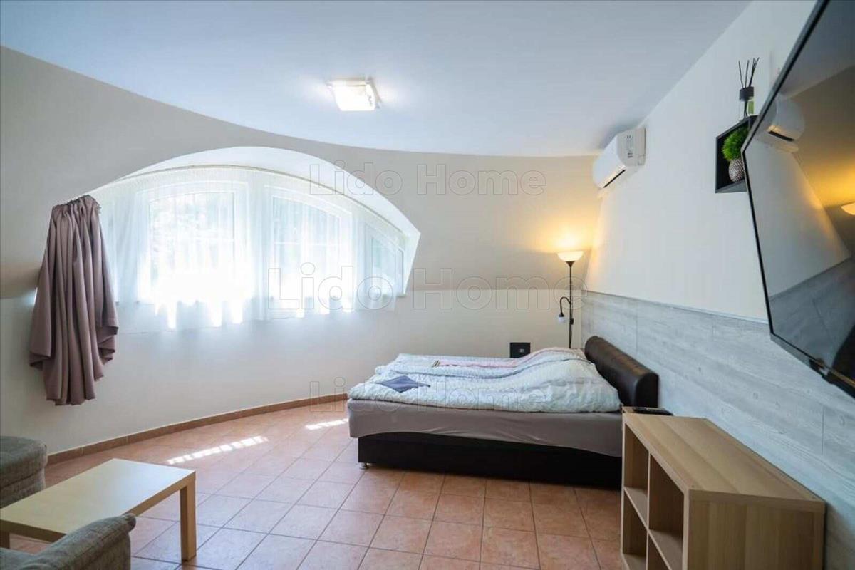 egyedi felszereltséggel, bejáratott apartmanházzal, és jelenleg egy családi otthonként használatos lakrésszel keresi új tulajdonosát.