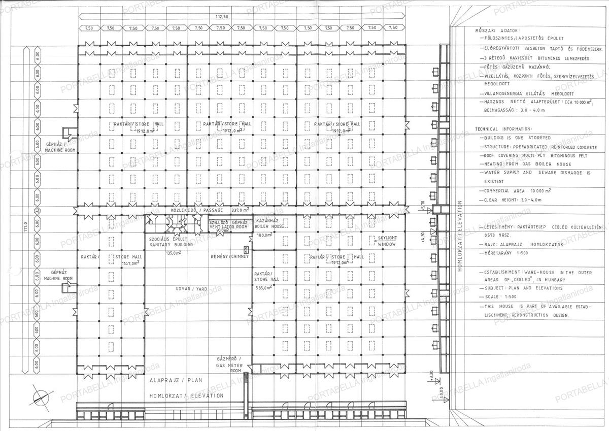Belmagassága: 2, 9-4m, vasbeton alap, előregyártott pillérek, tégla falazat, lágylemez fedés