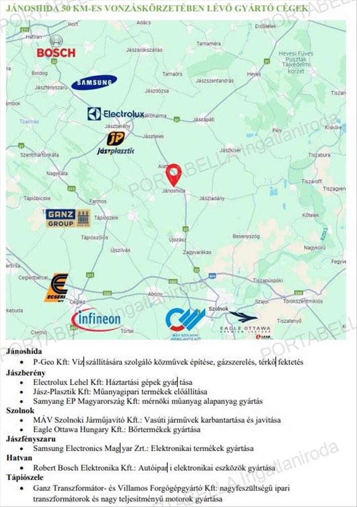 Az ingatlan Jász-Nagykun-Szolnok vármegyében, Jánoshida település nyugati külterületén, a Jászboldogházára vezető út mentén a település határáról kb. 1 Km-re található.