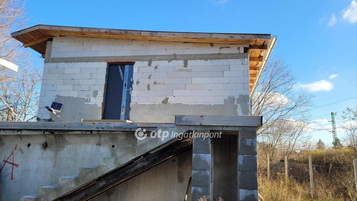 A jelenleg 50m2-es 2 szintes épület áll a telken, amelyben autó szerelőműhely, iroda, konyha, mellékhelyiség található, a felső szintet még nem használják.