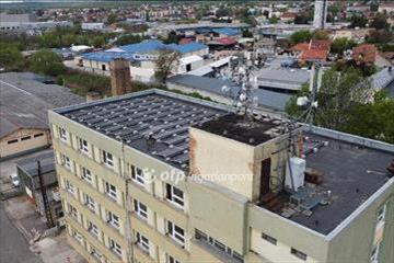 Eger Déli iparterületén, a sas úton, 2989 m2 hasznos alapterületű irodaház eladó. Az irodaház 5 emeletes, vasbeton pillérváz szerkezetű, alápincézés nélküli, felújítást és korszerűsítést igényel. a földszint és az első emelet 800 -, a további szintek pedig 350m2 alapterületűek. a zárószint felett a tető teljes felújítást kapott és 3x50A napelem került kialakításra. Az épület szerkezetileg stabil, jelenleg régi, de hőszigetelt nyílászárók vannak beépítve és az egész épület külső hőszigetelést kapott. Az irodaházban lift lehetősége adott. Az irodaház földszintjén lévő egyik 75 m2-es iroda teljes felújított állapotú. Az irodaházhoz tartozó telek 1925 m2 alapterületű.Igény szerint, néhány méterrel odébb, további önálló telekrész is vásárolható.
